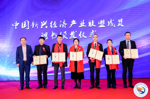 图:Index Bank指数银行亚太区CEO张彩芳博士受聘为中国新兴经济产业联盟副主席,并在第二届中国新兴经济产业大会开幕式上进行了中国新兴经济产业联盟副主席(成员)颁证仪式