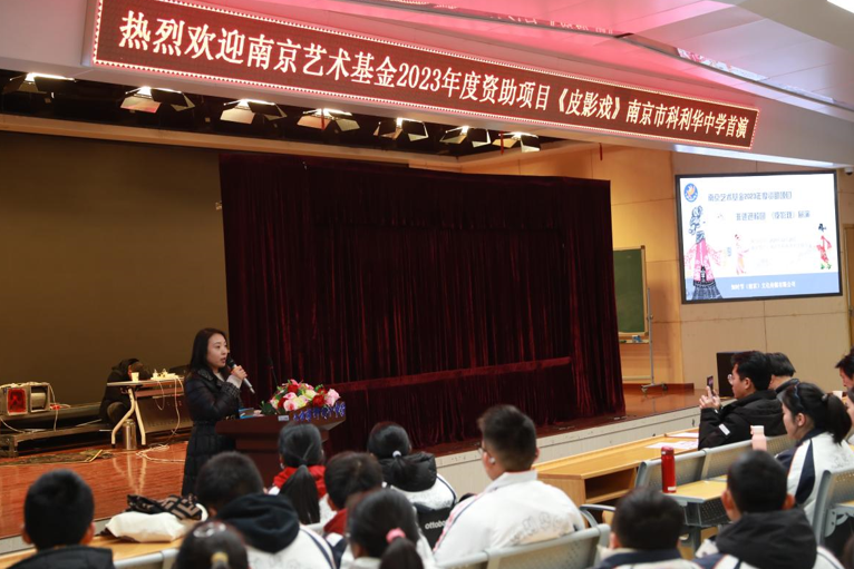 2023年12月20日下午4:30,南京艺术基金2023年度资助项目《非遗进校园 皮影戏展演》在南京科利华中学获得首演成功,学校报告厅内座无虚席,掌声雷动,同学们都非常喜爱艺术家们的表演。