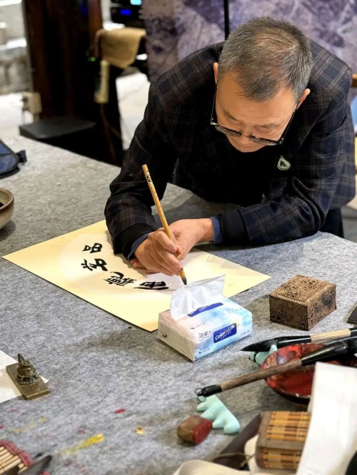 活动尾声,徐和真、翟文章、常惟璞、熊晓冬、陈燕平等书画名家即兴挥毫,歌颂母亲河。笔走龙蛇间,黄河的雄浑、长江的浩荡、赣江的灵秀跃然纸上,海外艺术家与本土创作者以墨会友,将"保护母亲河"的赤子之心凝于尺素。
